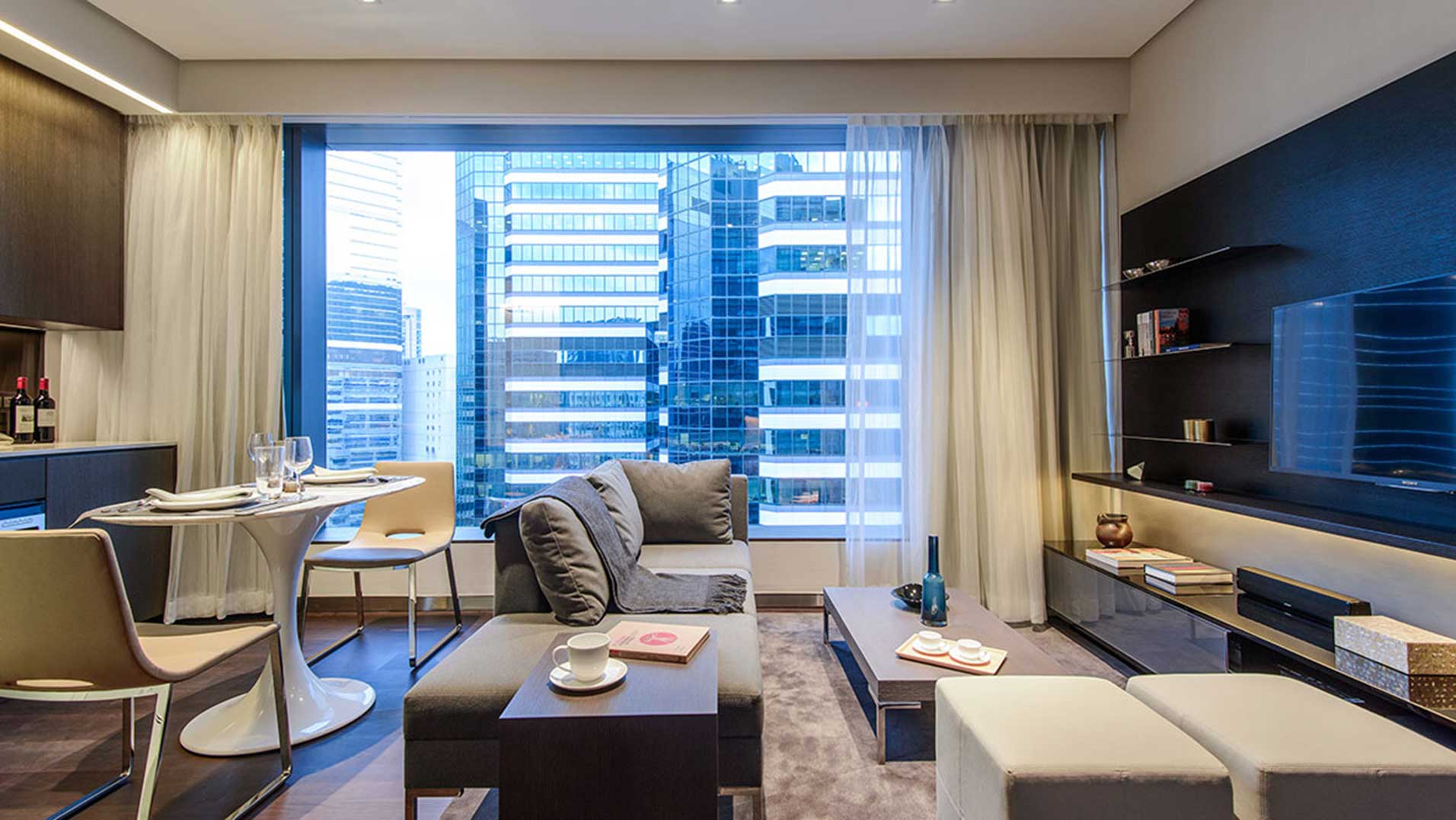 With interiors designed by acclaimed New York-based firm Richardson Sadeki, the 28-storey tower comprises 111 elegantly furnished suites with a hint of modern contemporary style, offering a range of studios, one-bedroom and two-bedroom suites and elegant penthouses, the respective gross areas of which are approximately 480 sq ft, 620 to 740 sq ft, 1,220 sq ft and 1,620 sq ft.