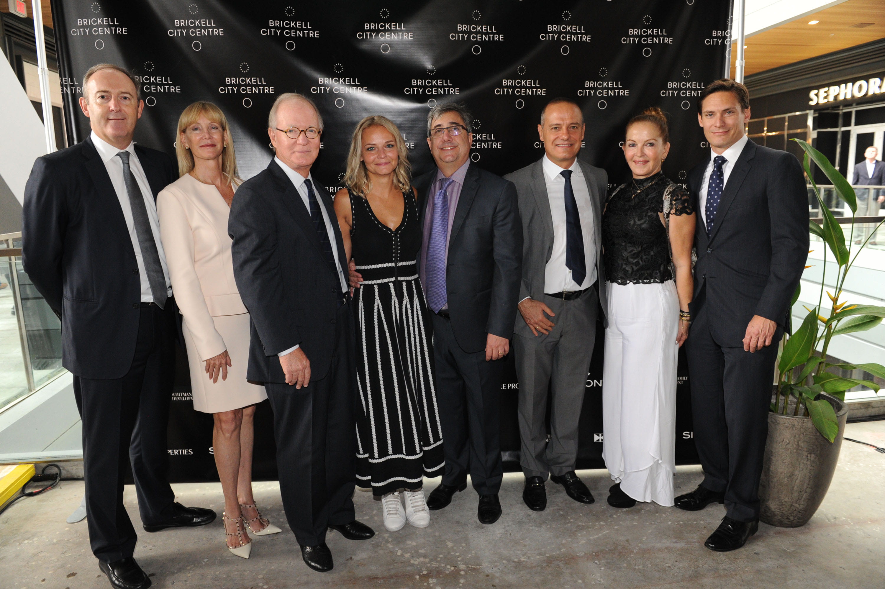 .Guy Bradley (first from left), Chief Executive of Swire Properties Limited; Stephen Owens (third from left), President, Swire Properties Inc; and Kieran Bowers (first from right), Executive Vice President of Swire Properties Inc celebrated the grand opening of Brickell City Centre at the newly unveiled retail centre.