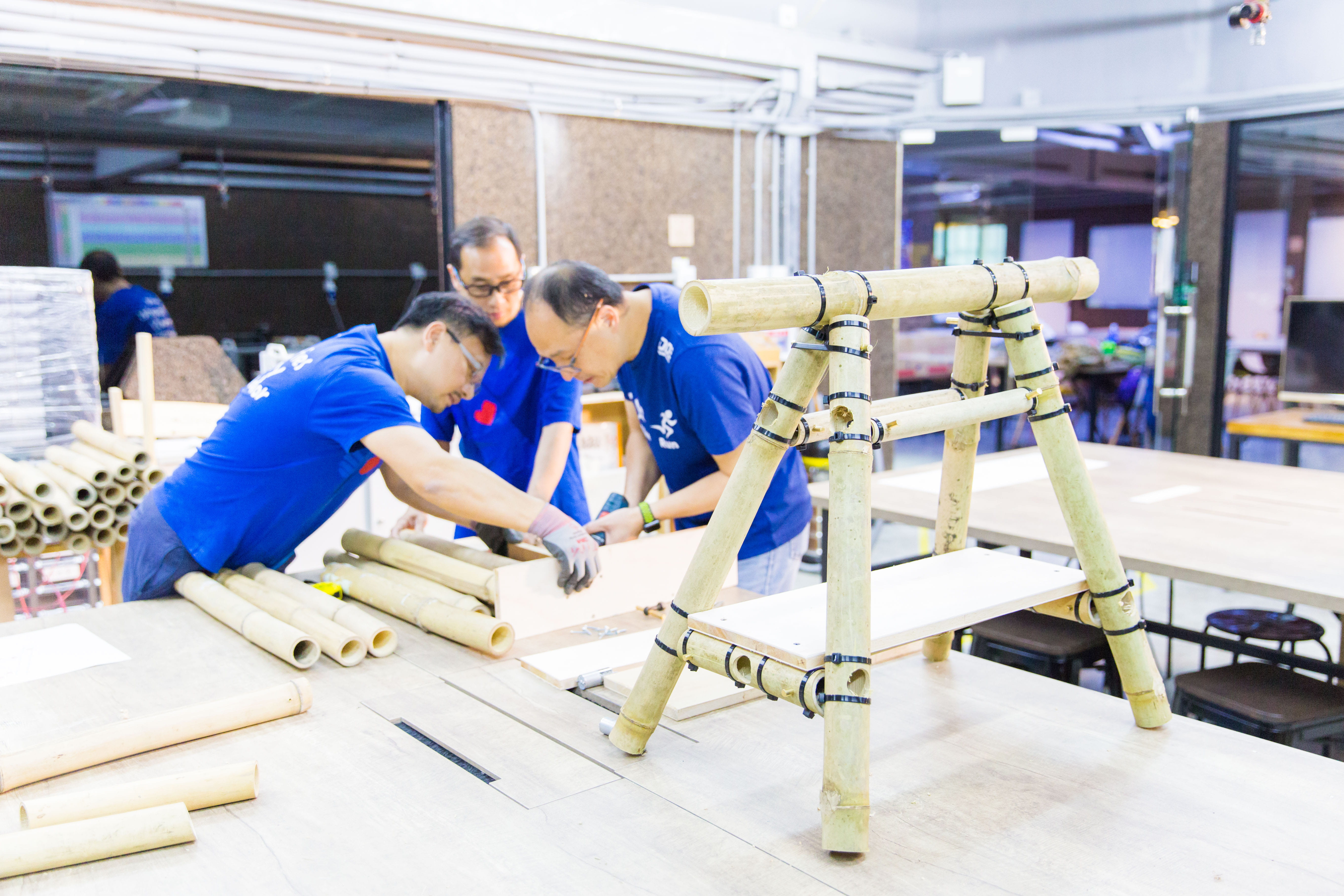 .Bamboo used as stall scaffolding at the Chinese New Year Flower Market is being upcycled to be transformed into tables for the book sale.