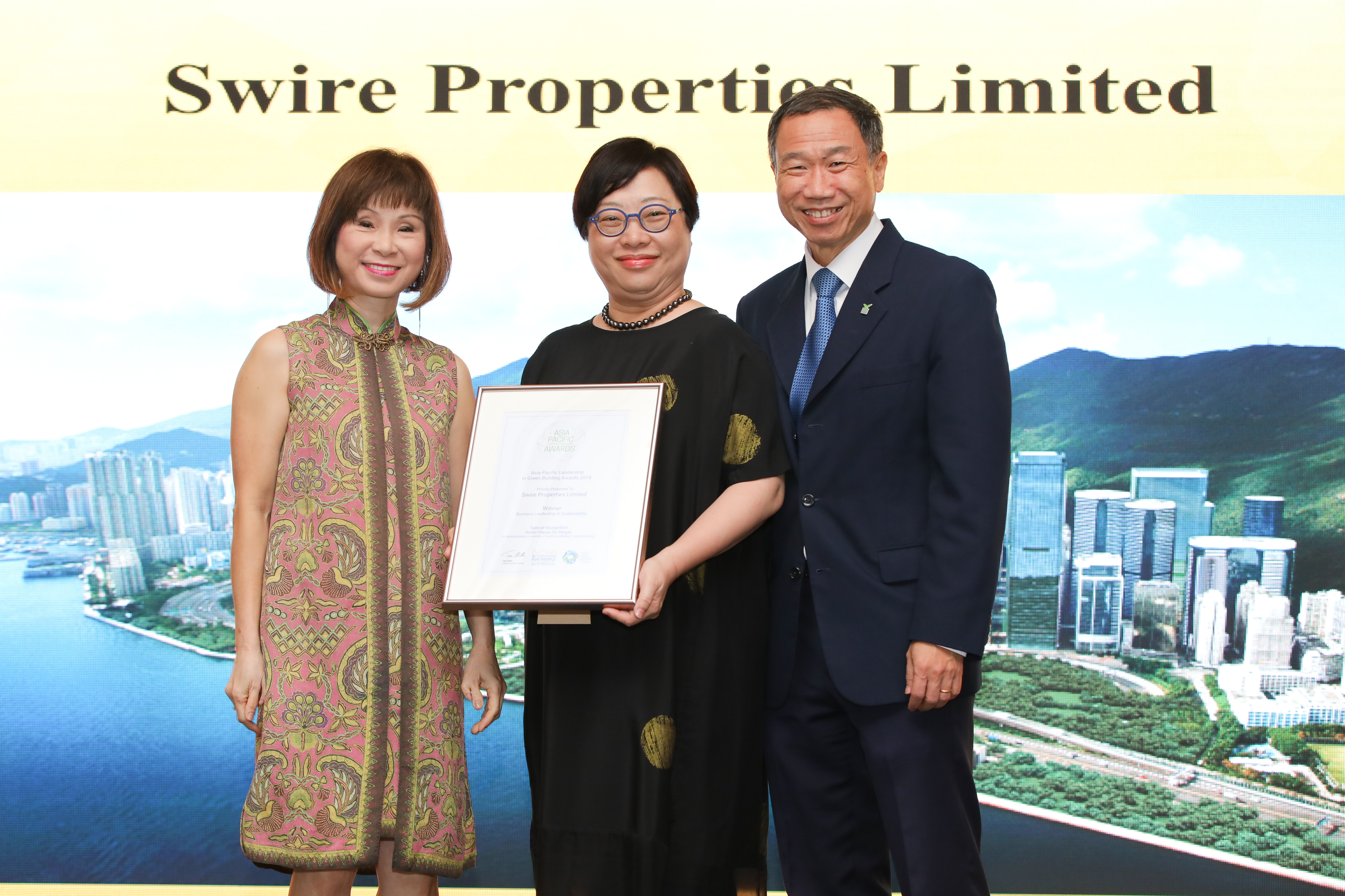 Leading these honours are the Business Leadership in Sustainability and Special Recognition: Better Places for People awards, which the Company won during the WorldGBC’s Asia Pacific Leadership in Green Building Awards (2018). This year, the Company was nominated by the Hong Kong Green Building Council to represent the city and compete against 15 corporations from the Asia Pacific region. The judges, in their assessment comments, applauded Swire Properties’ SD efforts which were carried out by employees at every level of the organisation; and in investing in the health and well-being of its tenants and staff.