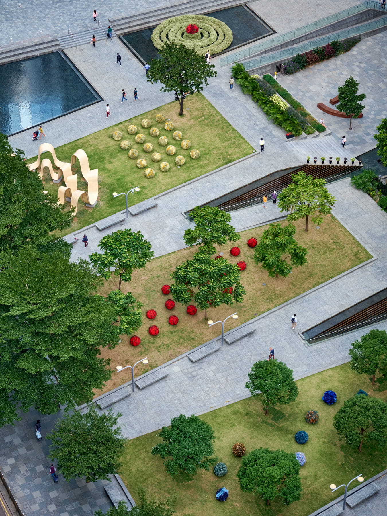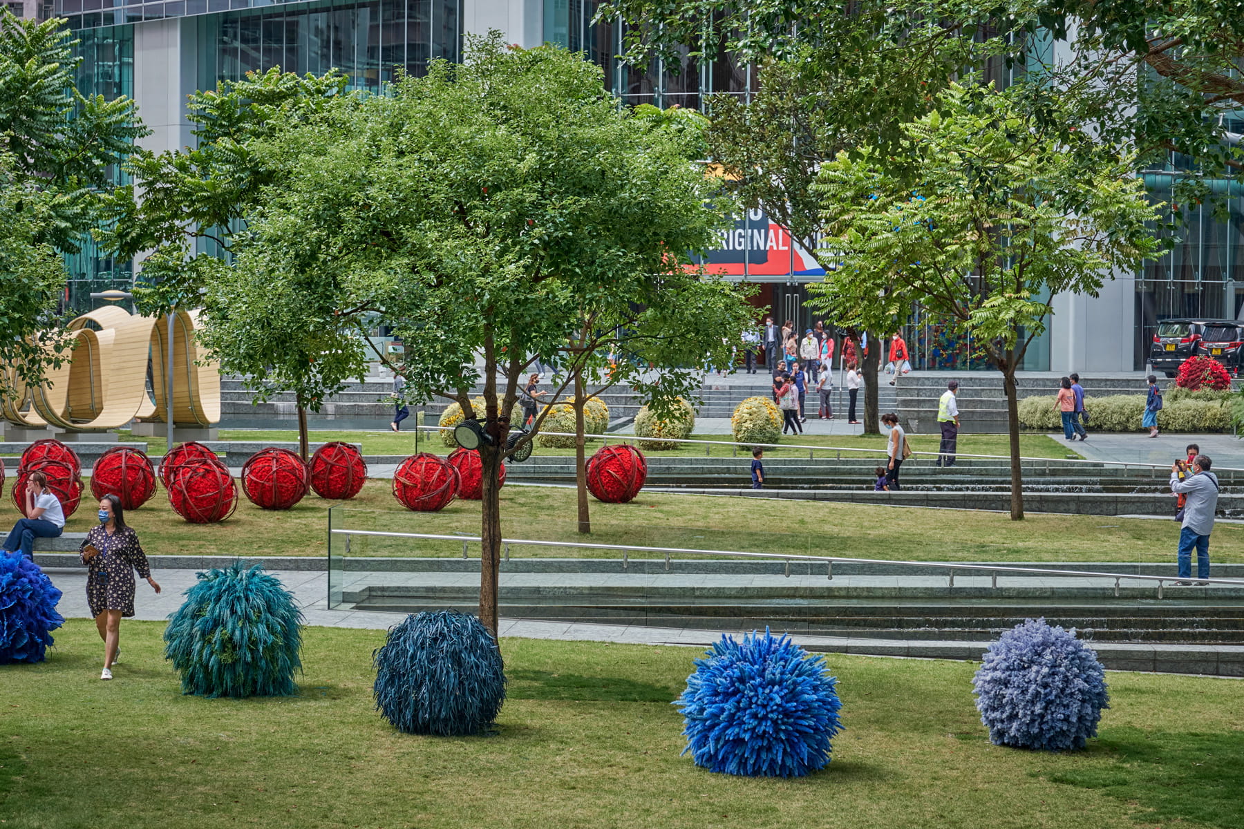 “Spectrum” in Taikoo Park tells the evolutionary story of flowers – from seed to foliage to bloom – through 50 striking botanical spheres in a colourful tapestry of yellows, reds and blues. Visitors are invited to immerse themselves among the radiant sculptures to experience this vibrant space.