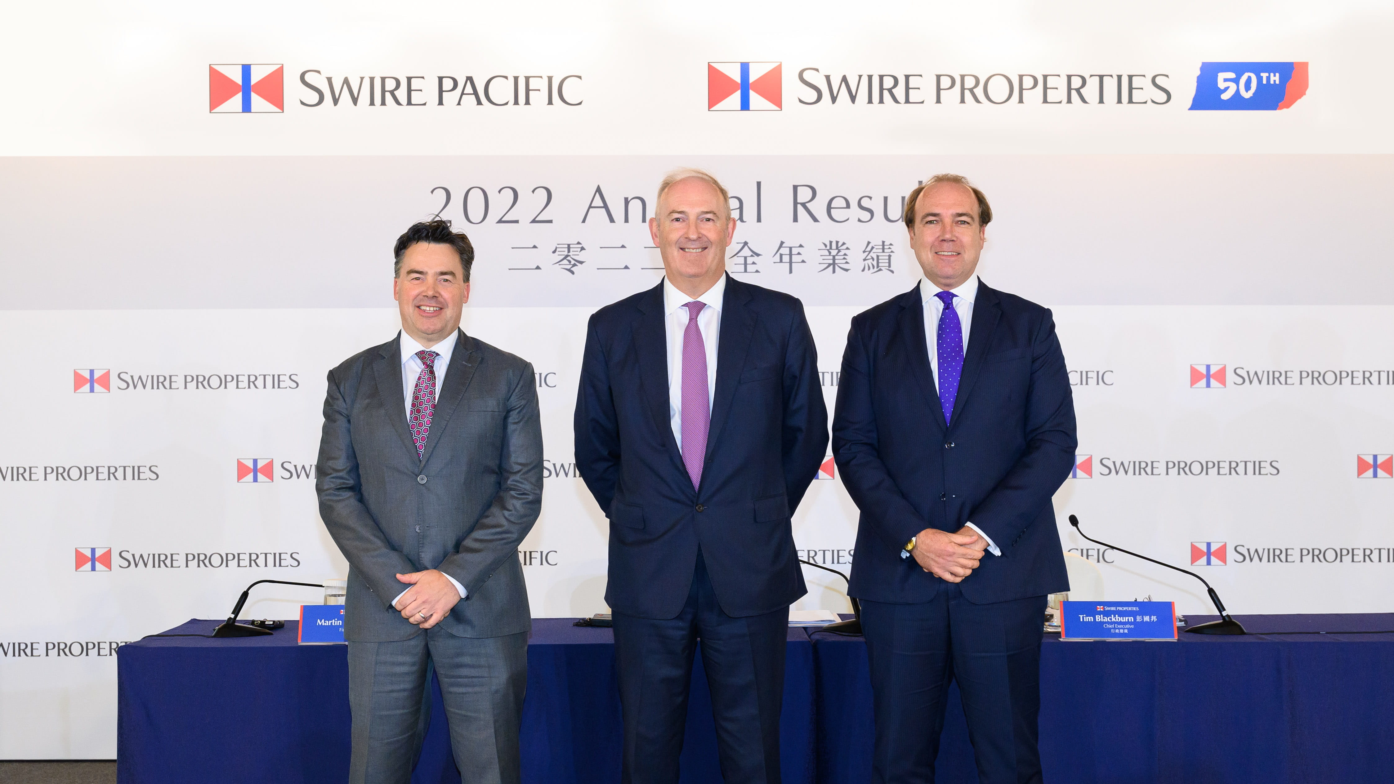.Guy Bradley, Chairman of Swire Pacific Limited and Swire Properties Limited (middle), Martin Murray, Finance Director of Swire Pacific Limited (left) and Tim Blackburn, Chief Executive of Swire Properties Limited (right).