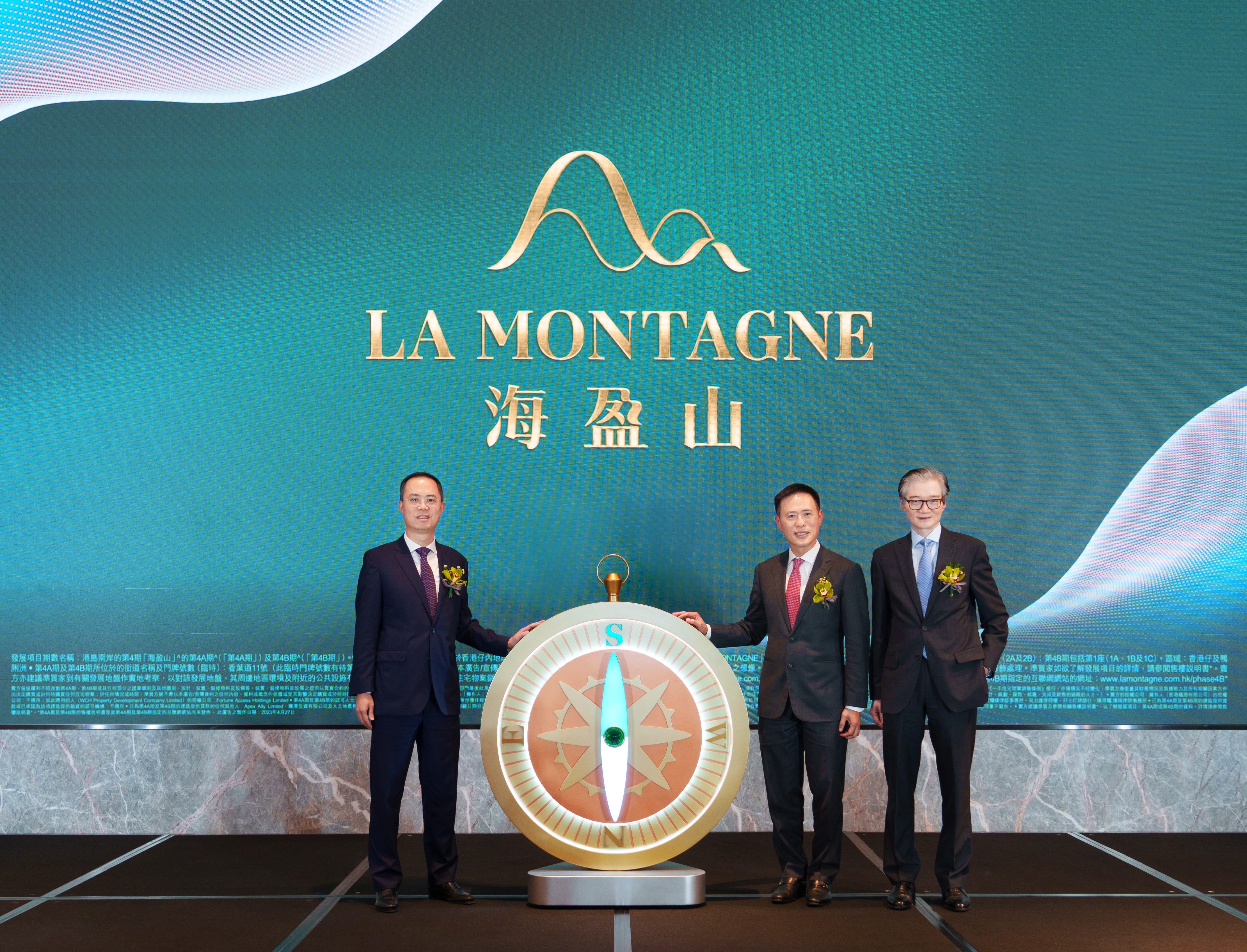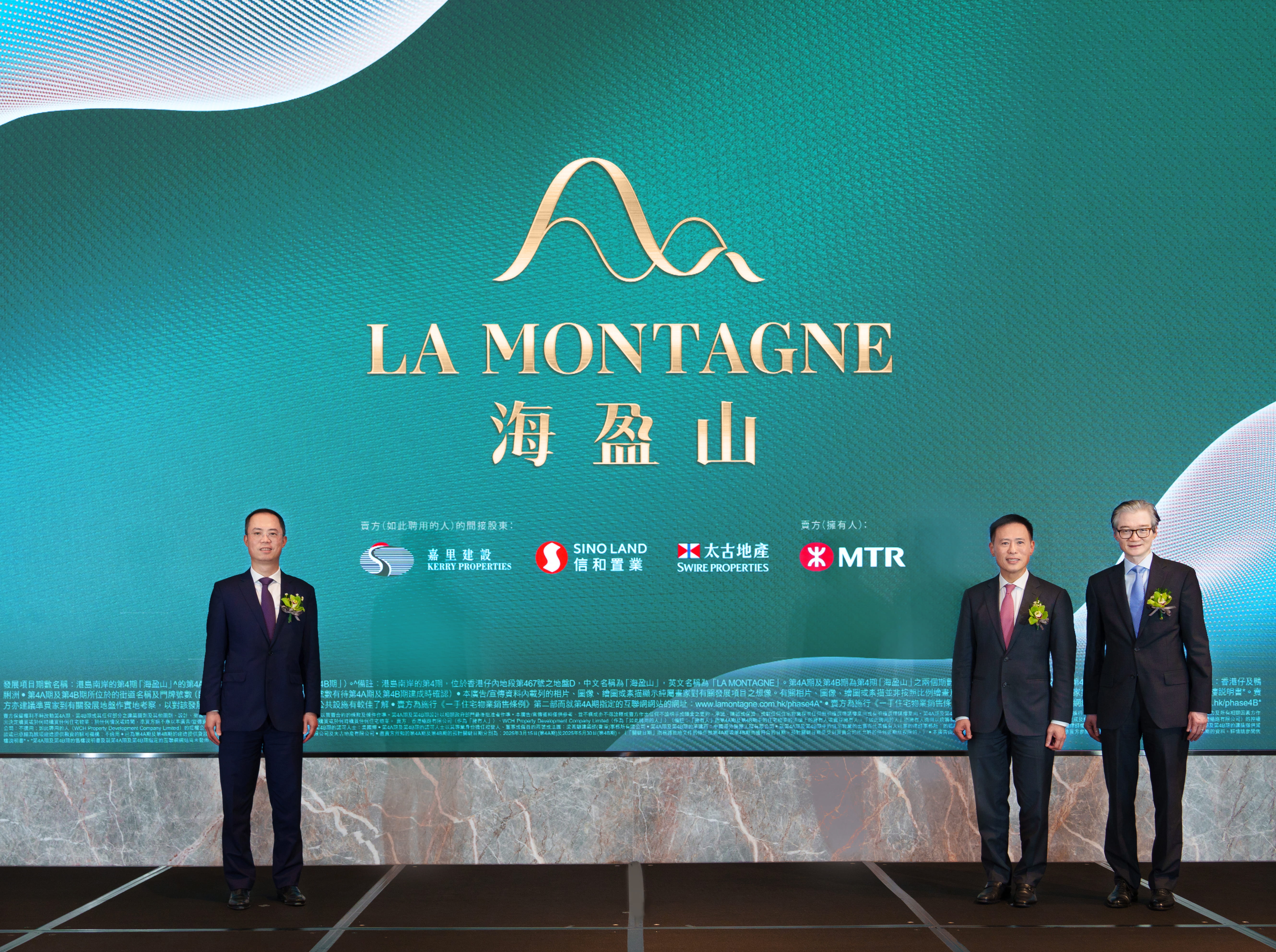 .THE SOUTHSIDE Phase 4, a collaboration between Kerry Properties, Sino Land, Swire Properties and the MTR Corporation at MTR Wong Chuk Hang Station, was officially named as “LA MONTAGNE”. Mr. Adrian To, Director, Residential at Swire Properties(first from right) , Mr. Calvin Tong, Director and General Manager, Hong Kong of Kerry Properties (H.K.) Limited (first from left) and Mr. Victor Tin, Executive Director of Sino Land (second from right) officiated at the naming ceremony.