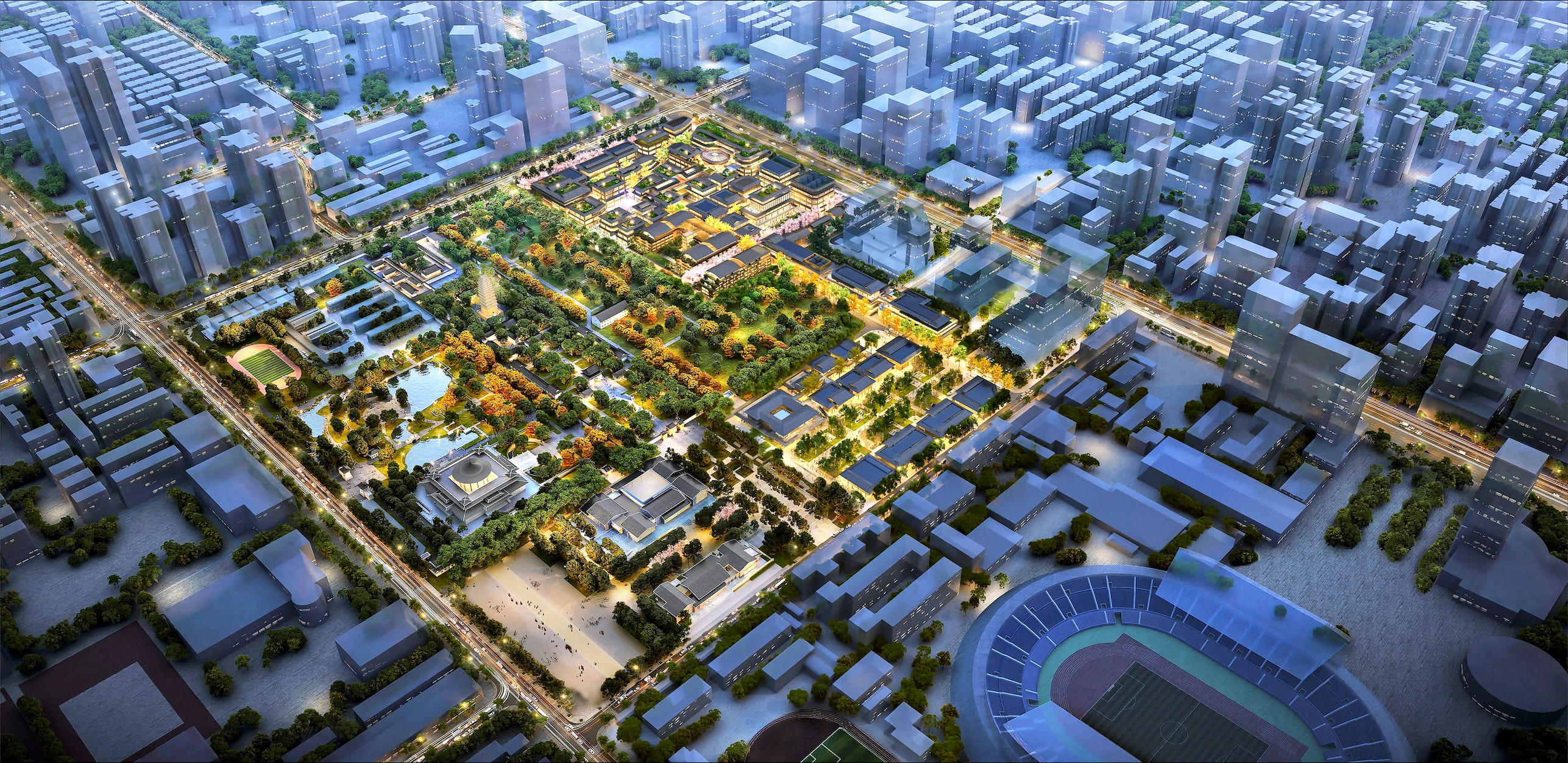 The design will also pay tribute to the historical significance of the location within Anren Fang, one of the 108 ancient Fangs (subdivision of a city) in the Chang’an City of the Tang Dynasty. The traditional urban fabric of the area will be preserved, with ancient streets, including the 7th Heritage Avenue第七横街, the 8th Heritage Avenue第八横街, and Yizi Heritage Avenue一字横街, carefully integrated into the layout.