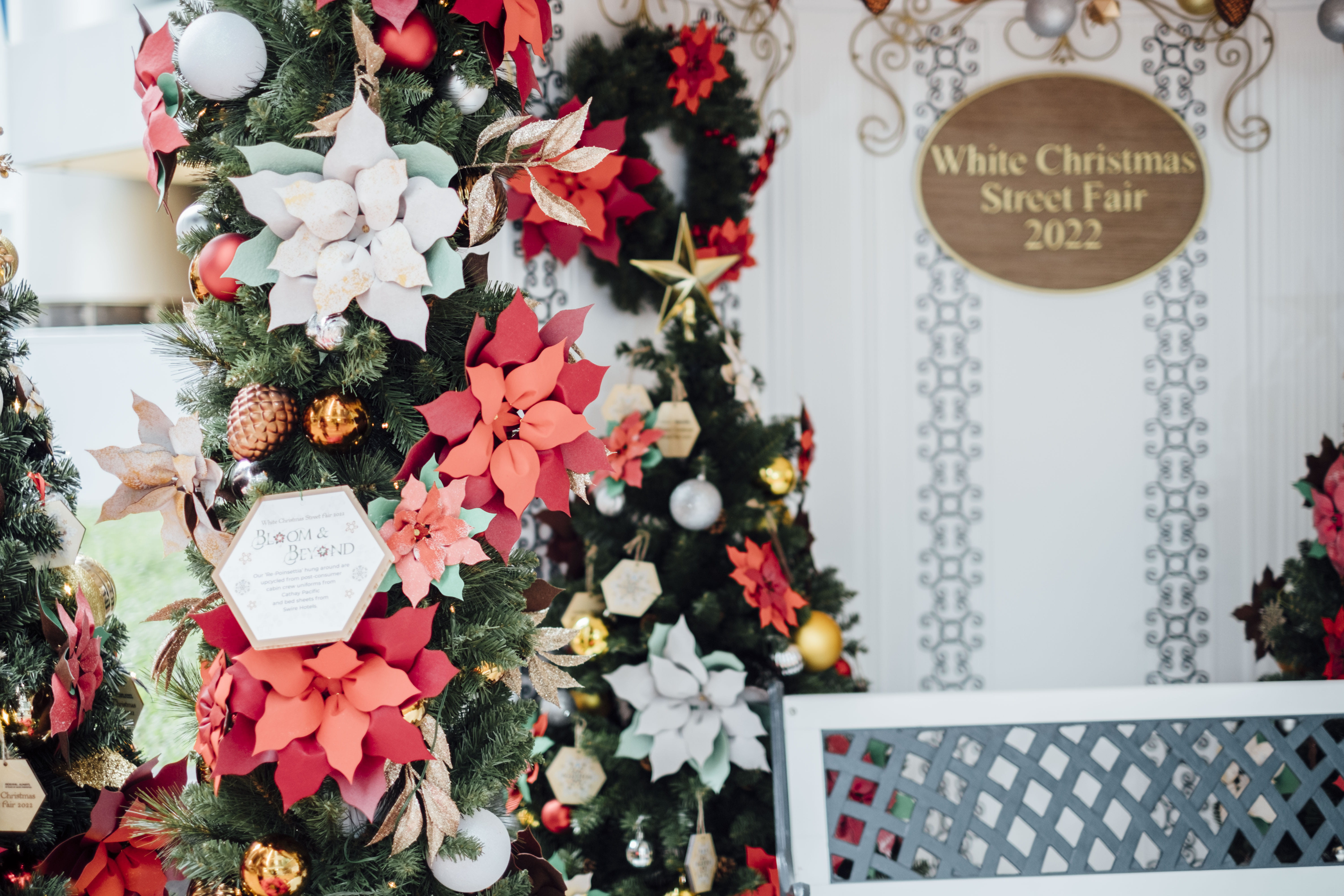 白色圣诞市集把糖厂街幻化成圣诞花园,5,000朵「再造圣诞花」将遍布市集每个角落。圣诞花由旧纺织回收物料,包括国泰航空机舱服务员制服及太古酒店床单升级再造而成,贯彻可持续发展理念。